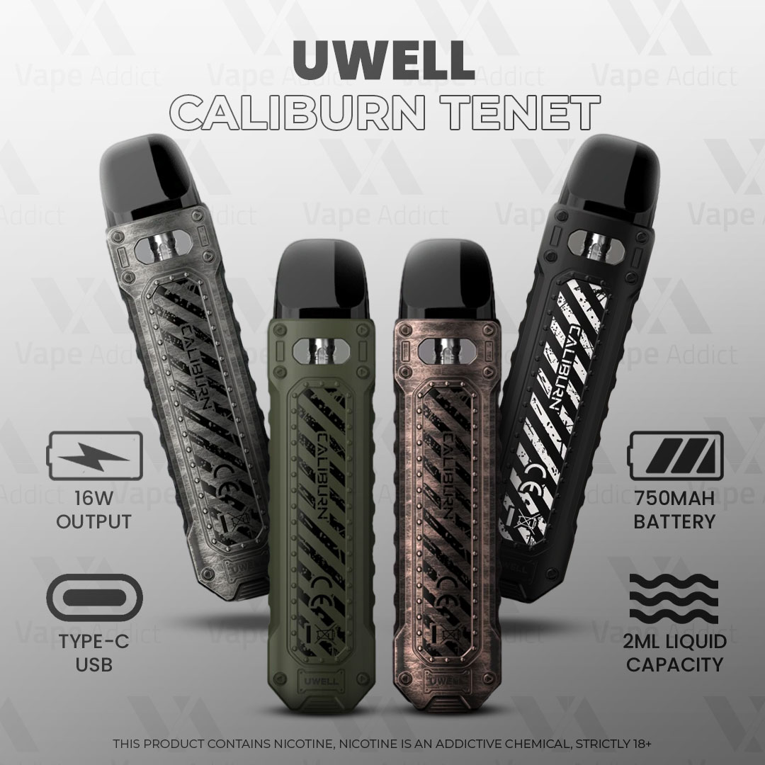 ویپ کالیبرن تنت یوول ، یک ویپ سیستم استاندارد در خانواده ی محبوب Caliburn کمپانی یوول است. این کیت ، جلوه ای جذاب و متمایز از سایر محصولات این خانواده دارد و به سبک Wasteland و Electronic طراحی شده است. این ویپ ، وزنی سبک دارد و سطح پشت و روی آن ، ورقه های نازکی با رنگ ها و طرح های جذاب نصب شده اند. از نظر طراحی ، این ویپ شباهت بسیاری به ویپ کالیبرن جی ۲ یوول دارد و ظاهر آن ، قلمی و کشیده است. در لبه های کناری این پاد ، برجستگی هایی برای خوش دست بودن دستگاه کار شده و از این ویپ ، می توانید هم با سنسور و هم با استفاده از دکمه استفاده کنید.